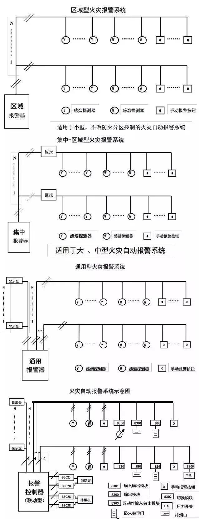 (1)區(qū)域報(bào)警系統(tǒng):由區(qū)域(火災(zāi))報(bào)警控制器和火災(zāi)探測(cè)器等組成的功能簡(jiǎn)單的系統(tǒng)。